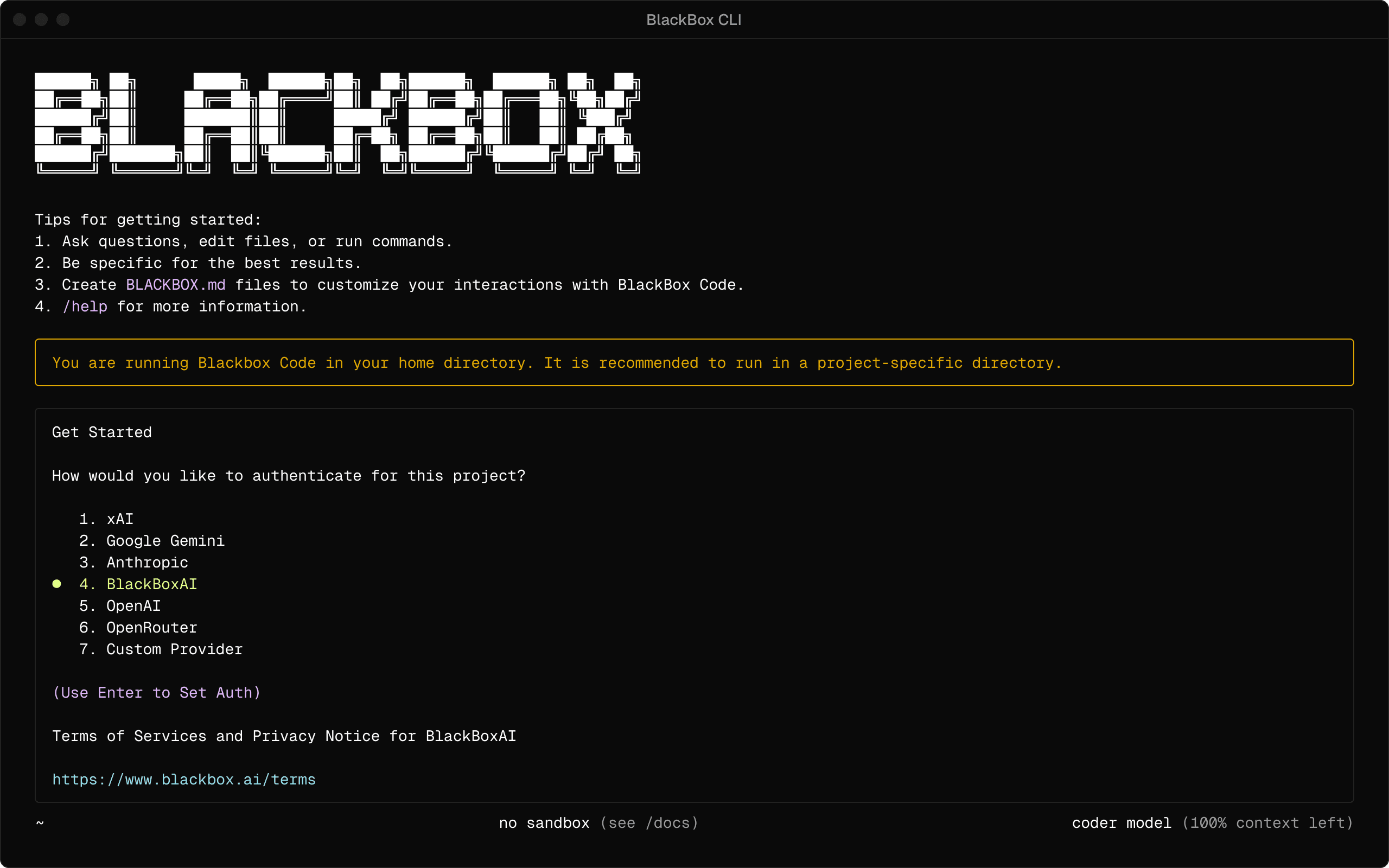 Follow these quick steps to configure BlackBox CLI and start building with AI.