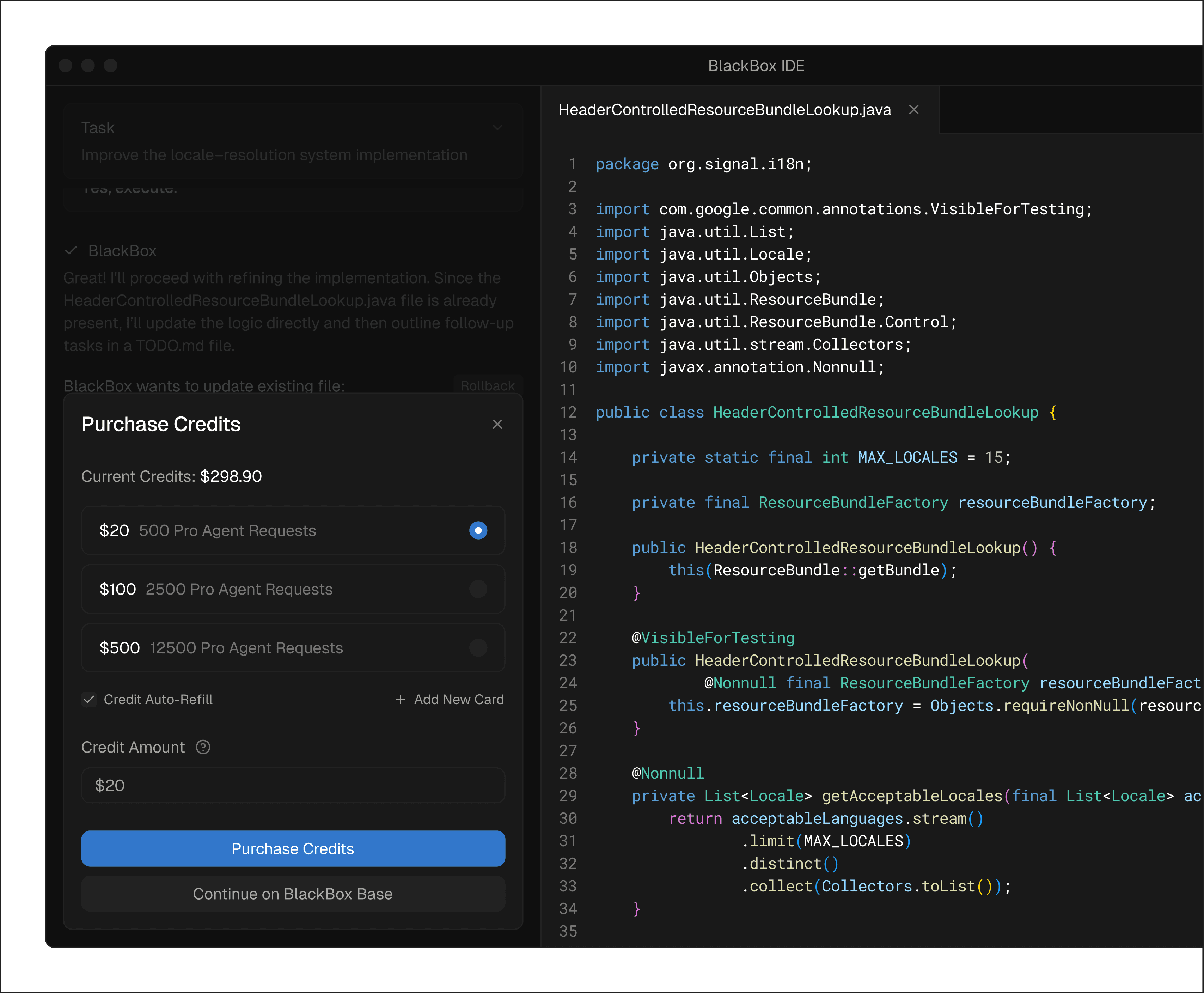 Instant Top-Up: Buy more credits without leaving the IDE.
